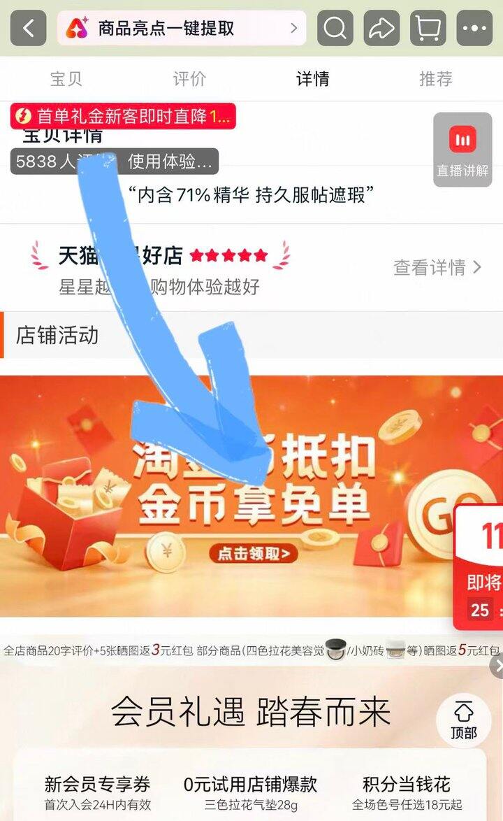 ❷领礼金后看图下拉详情叠金币抵10.5r加购1件
