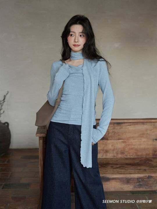 夕蒙2025新款秋季韩系小众时尚气质上衣小个子设计感辣妹洋气T恤