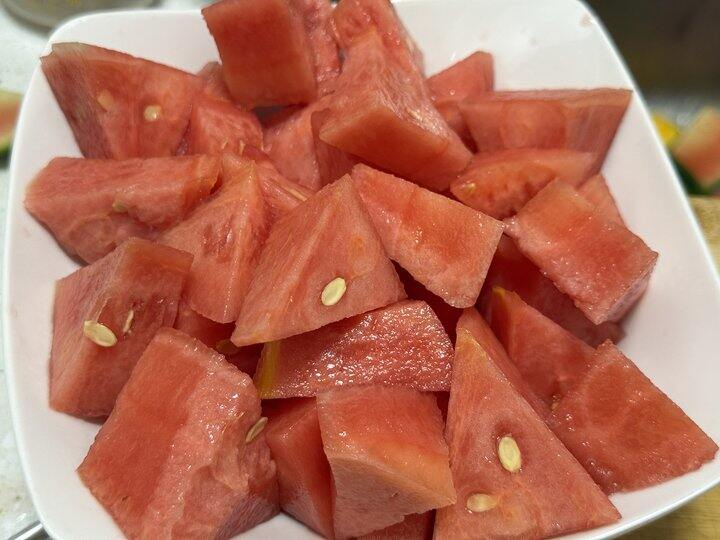 @路口小贩,要的西瓜反馈来啦,皮薄 甜。就是等了好几天,说是等口感发货,没白等