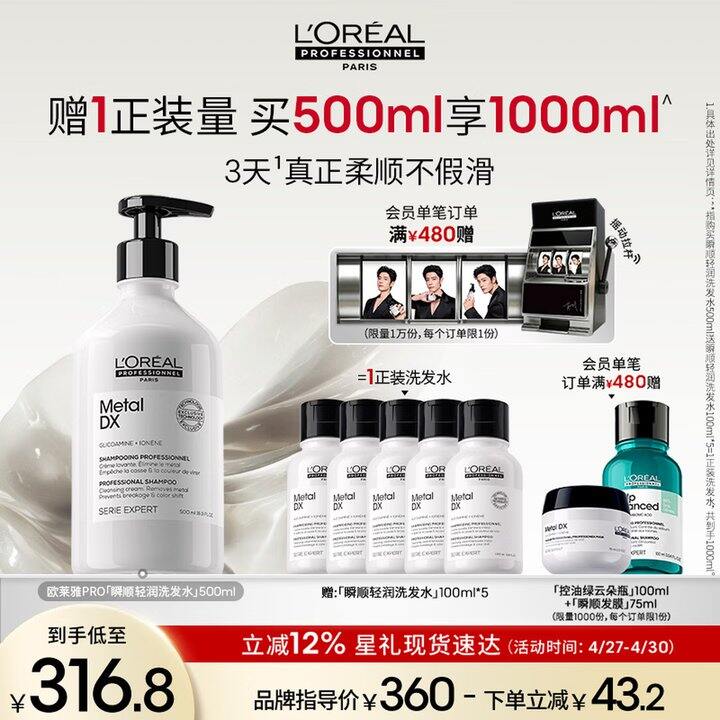 2、欧莱雅 PRO发膜(赠:发膜75ml*4)拍:https://u.jd.com/fDOq9WJ