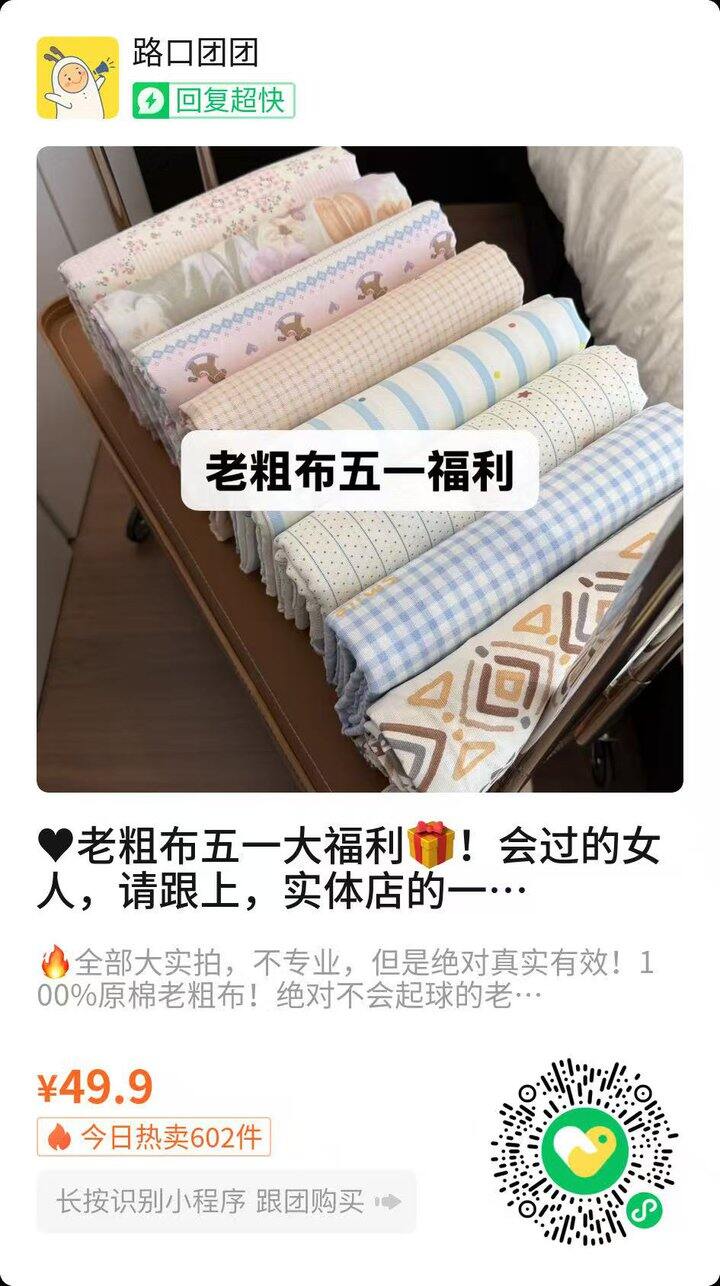 规格:粗布床单230✖️250,两个枕套48✖️74,三件套 到手49.9元