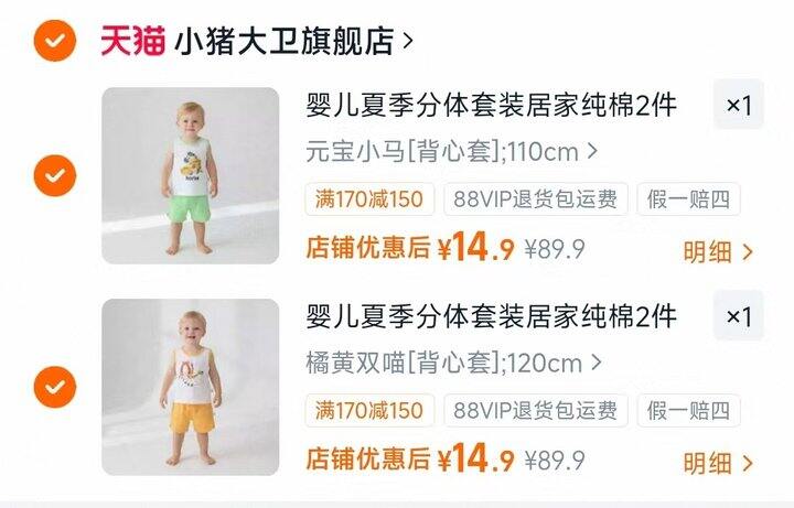 小猪大卫 背心套装💰14.9/套‼️短袖套装💰16.9/套‼️防蚊裤/短袖💰13.2/件‼️防晒服💰20.2/件‼️