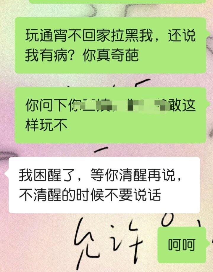 我现在就是觉得他很脏,而且经常彻夜不归在外面玩,不接电话不回信息不解释还要倒过来对我发脾气,我不让他动我,他就反反复复的到处说我有b,他们家人就拿那种看sjb的眼神看我,在那家里我情绪很差,我现在带着女儿住在自己的小房子里。