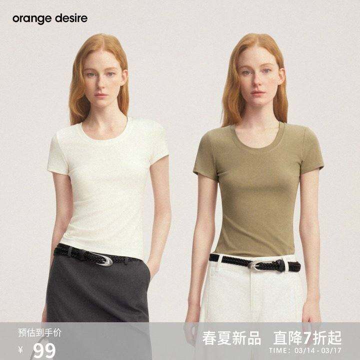【软糖Tee】orange desire时髦U领T恤女2026年夏新品多色百搭短袖