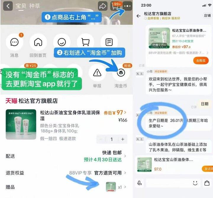 Bug快‼️松达山茶油身体乳💥32到手正装,赠品设置错误❎