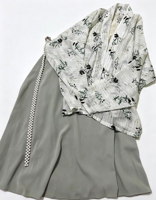 搭配熊猫抱竹🎋的飞机袖,面料清透舒服适合夏天,里面搭个吊带,优雅里带点活泼。
