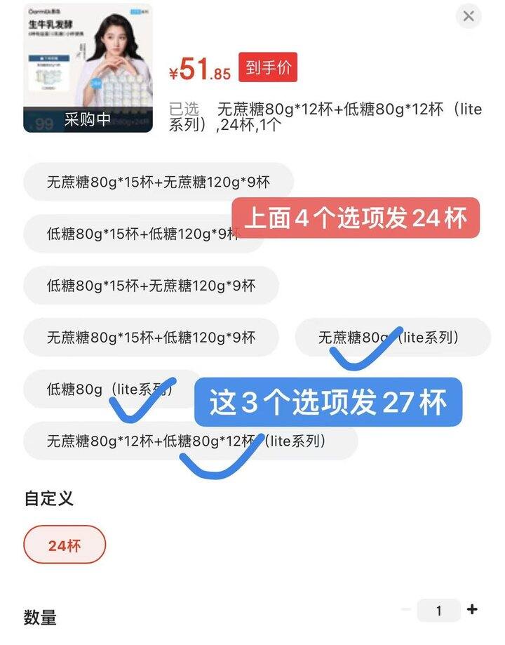 2️⃣低糖酸奶80g*12+无蔗糖80g*12+赠80g*3杯