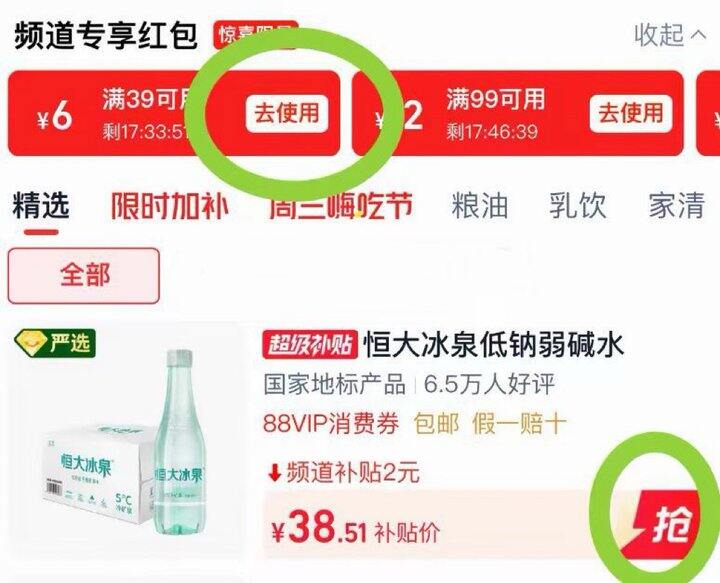 该频道页面下拉找到恒大冰泉点抢加购(如图3)