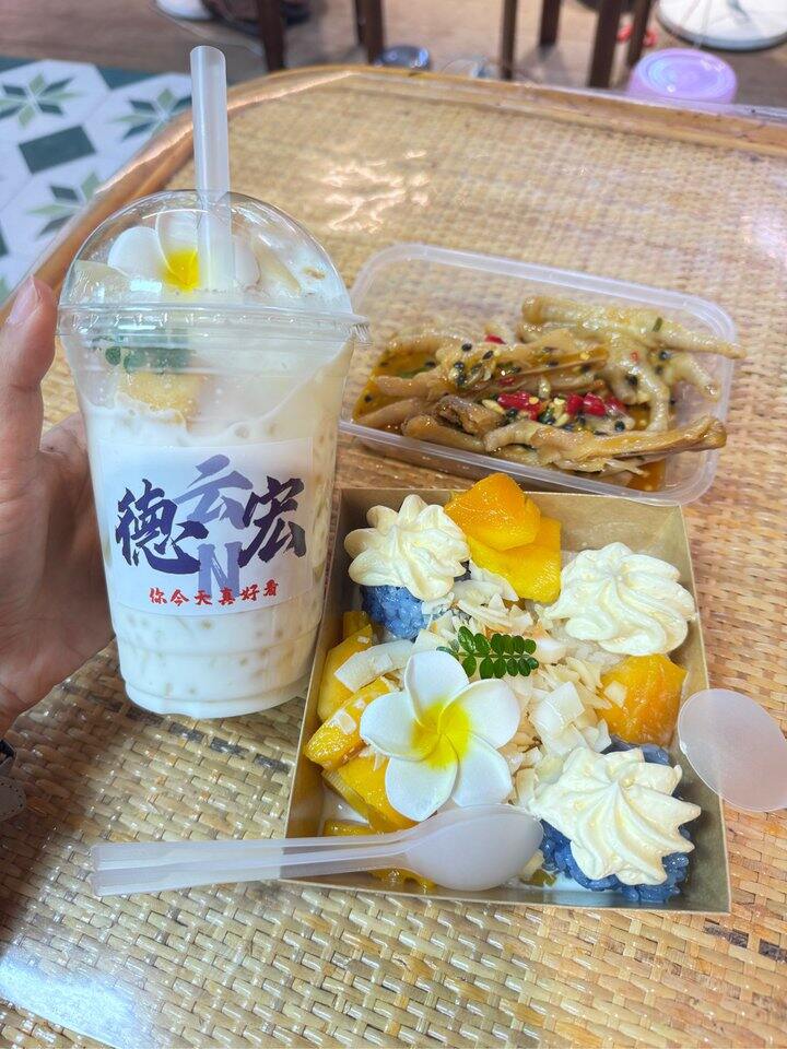 ⬇️莎姐很辣,泡鲁达、芒果糯米饭、百香果鸡脚,还不错。