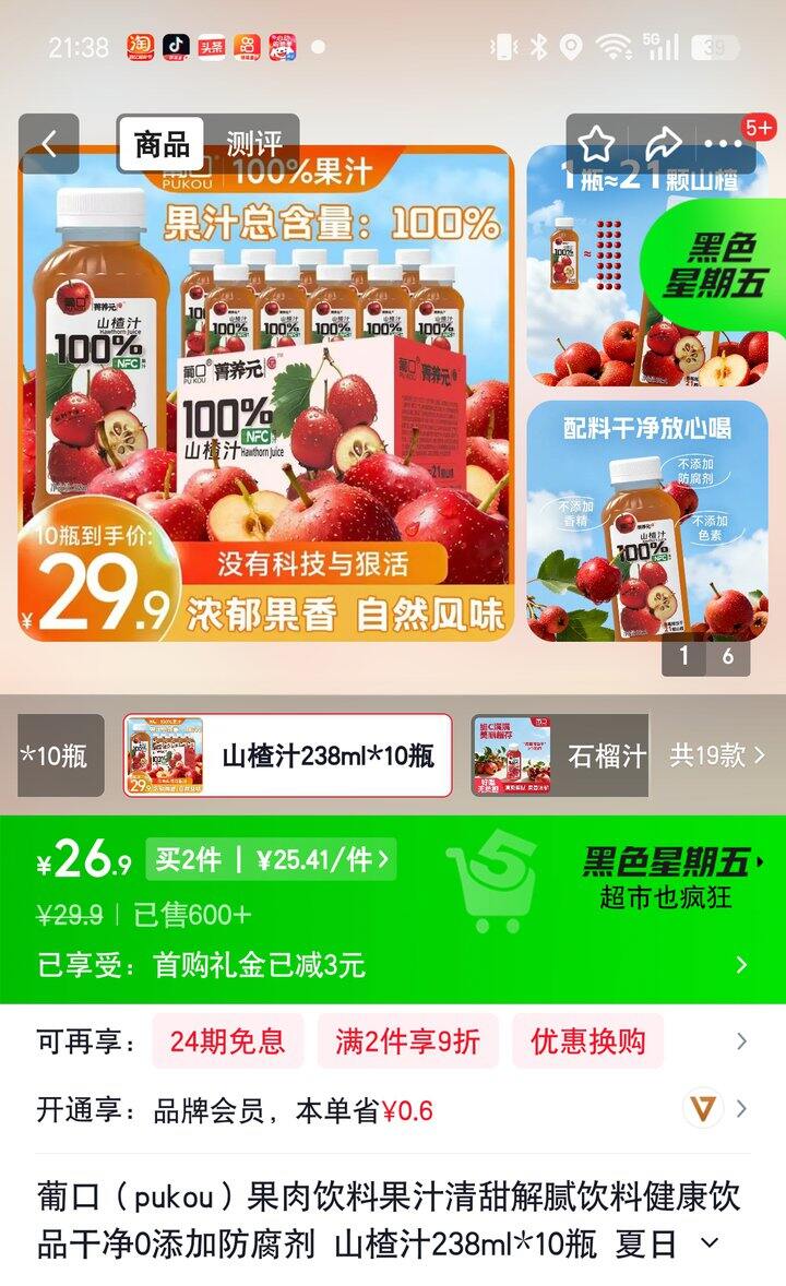 ❸山楂汁𝟐𝟑𝟖𝐦𝐥✘𝟏𝟎瓶【16.9】