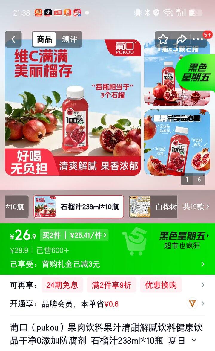 ❷石榴汁𝟐𝟑𝟖𝐦𝐥✘𝟏𝟎瓶【16.9】