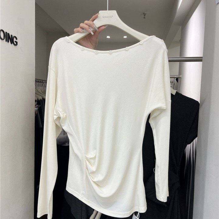 2025韩国东大门gogoing早秋新款一字肩气质收腰显瘦轻熟风T恤上衣
