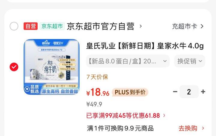 牛奶Plus到手39.92,每盒1.66,合适的❗