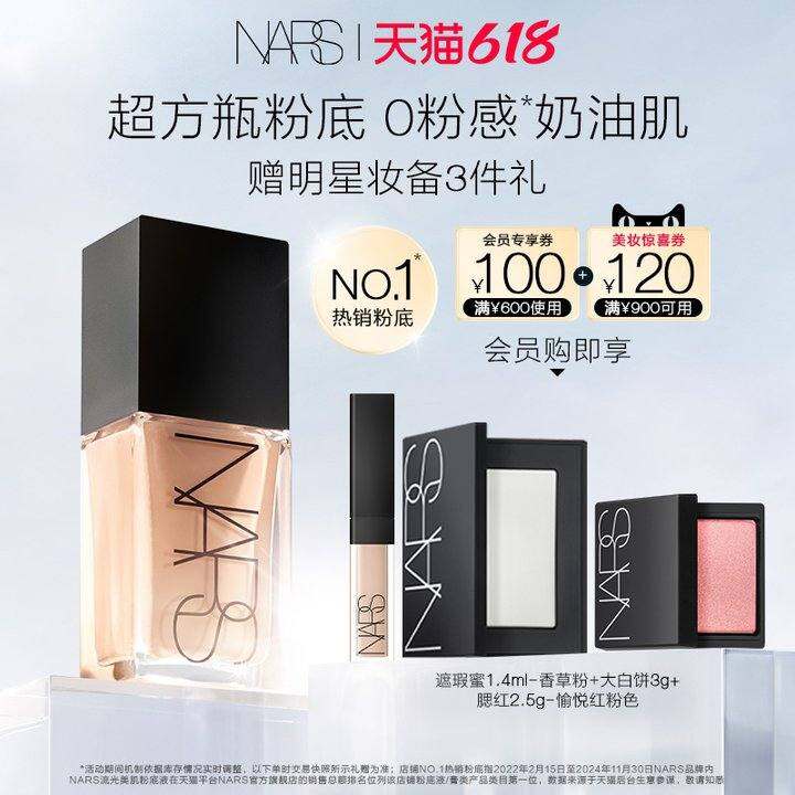 【618现货抢购】NARS超方瓶粉底液 轻薄润贴持妆不卡粉遮瑕混干皮