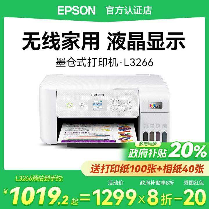 【政府补贴20%】EPSON爱普生L3266 L3267 L3269 打印机小型家用打印覆印扫描a4彩色显示屏墨仓式照片无线WIFI