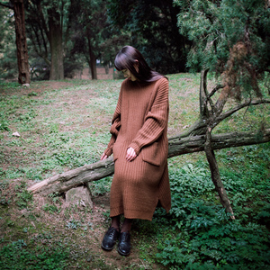 11-23 德州巴黎 纯色加厚元宝针 超长圆领 毛线连衣裙 3色