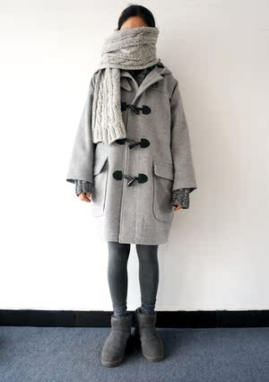 ZOPICLONE/超时髦灰!浅灰色真皮牛角扣羊绒大衣外套