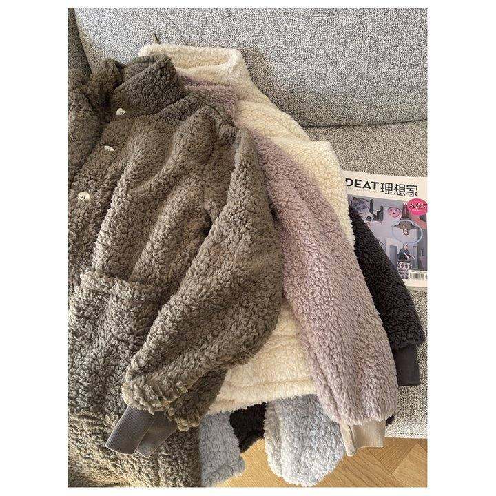 高货秋冬仿羊羔绒半高领轻质保暖中长款家居服上衣