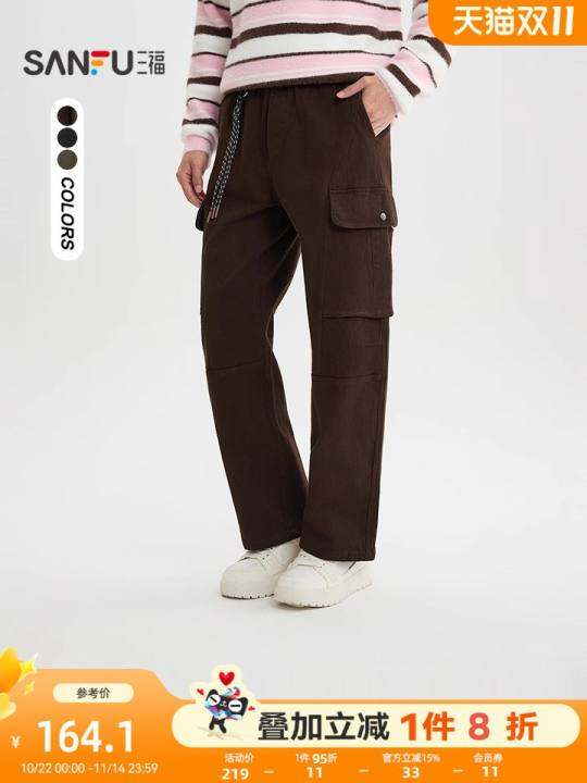 三福2025冬季男士挂饰设计分割结构休闲裤 宽松直筒裤子511726