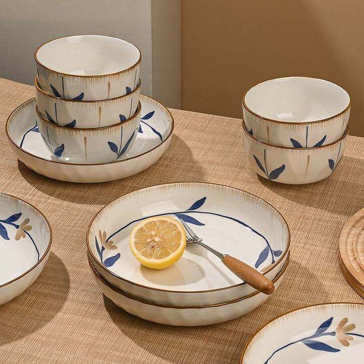 陶瓷盘子家用菜盘碟子新款釉下彩汤盘深盘日式高颜值水果沙拉盘
