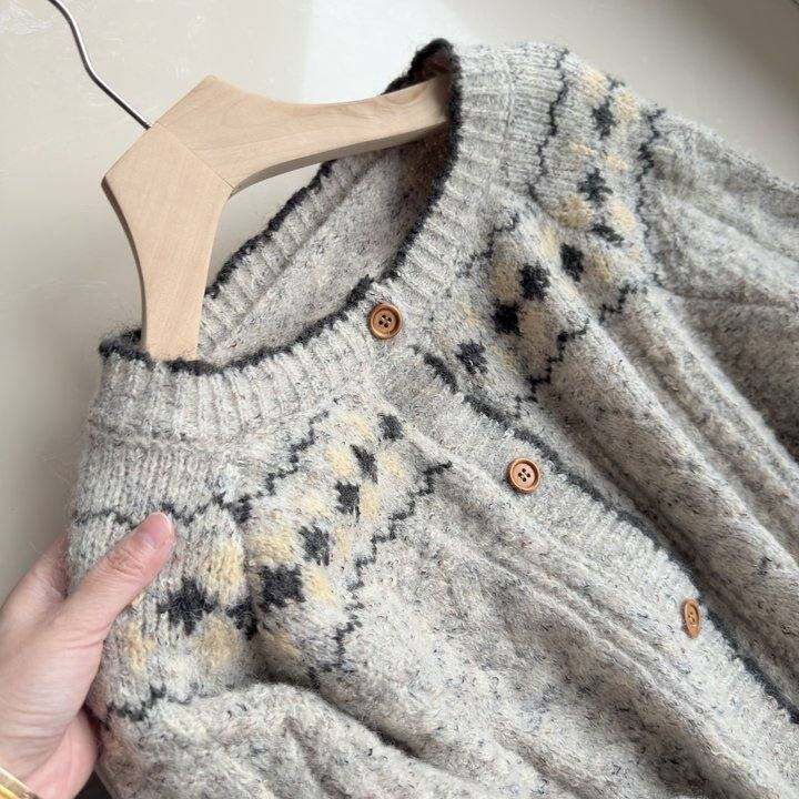 魔薇家 品P订单 复古提花羊毛 女士休闲圆领针织开衫 毛衣外套秋