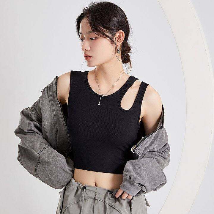 背心女夏带胸垫露脐小吊文胸一体防走光内衣短款瑜伽服上衣外穿薄