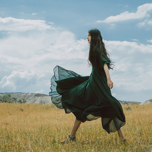 彼得潘的流浪梦之文艺优雅宫廷复古中世纪风超大裙摆荷叶袖连衣裙