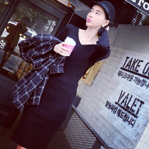 【13C】独家定制 秋冬必备 亲肤 显瘦抽条 大V领针织连衣裙 CN22