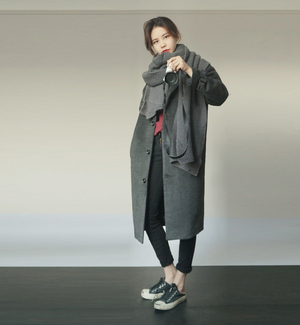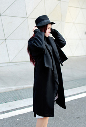 KG重磅!韩国复古宽松落肩羊毛呢大衣oversize廓形毛呢外套女长款