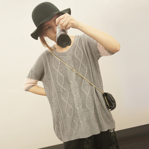 2014秋冬新品百搭纯色拼接七分袖麻花毛衣针织套头女