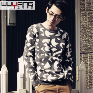 五洋男装 2014秋冬新款 时尚羊毛衫男士修身圆领套头毛衣针织衫潮