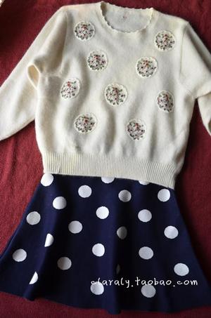 2014秋冬新款韩国复古手工刺绣套头兔羊毛圆领毛衣女韩版宽松