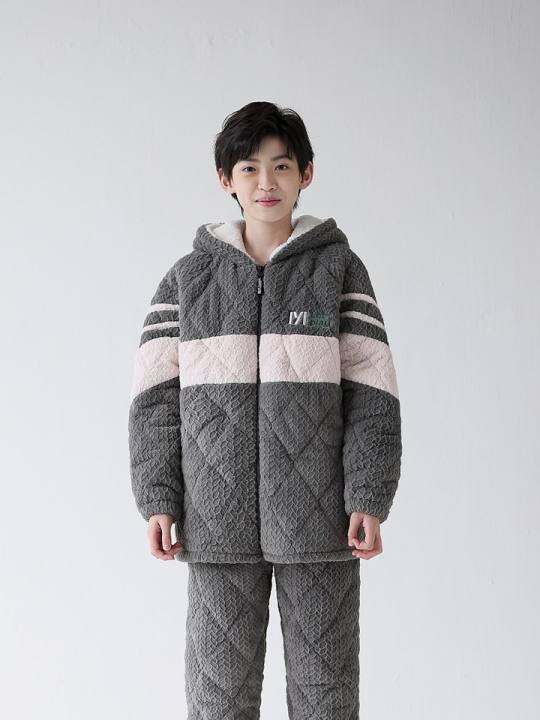 噜噜牛男童睡衣冬季大童法兰绒夹棉三层2025秋冬加厚款儿童家居服