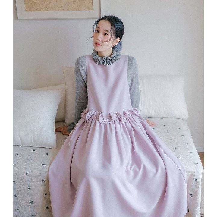 blushwhite 香芋紫无袖立体荷叶花边连衣裙