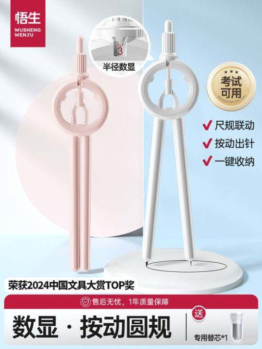 悟生数显按动圆规考试专用学生用专业绘图尺规套装初中生高中创意高颜值多功能笔式笔形带刻度小学生安全制图
