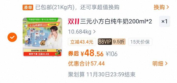 我不知道之前在哪领了个惊喜红包5元的,所以拍下来是48。