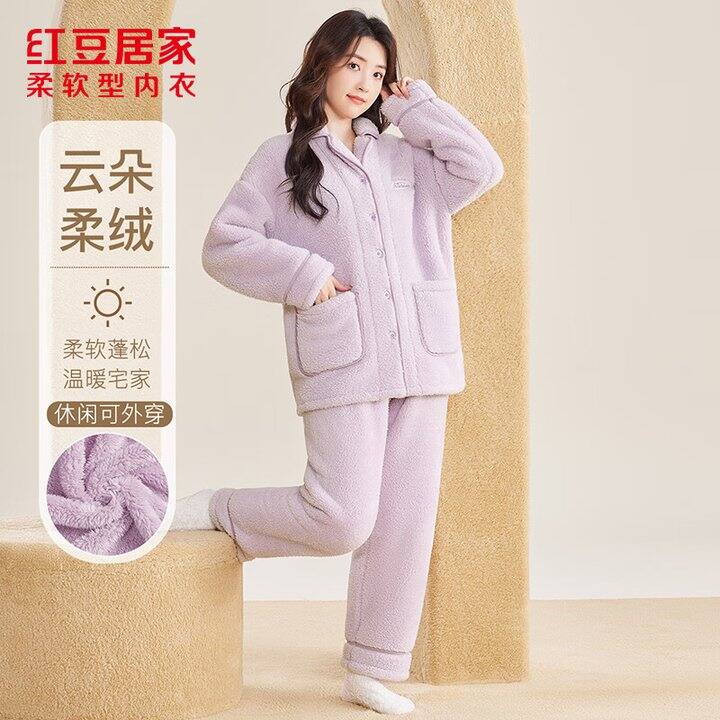 69.8元红豆男女加绒开衫睡衣