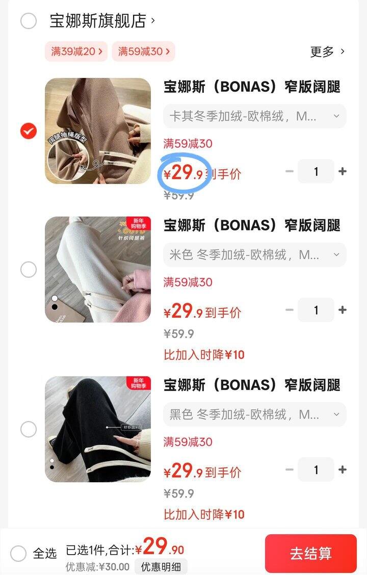 2、凑1件,一起拍下后退了