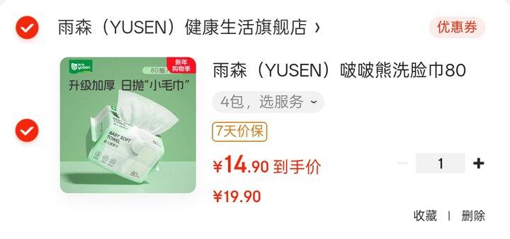 雨森 (YUSEN)啵啵熊洗脸巾80抽/包*4包14.9