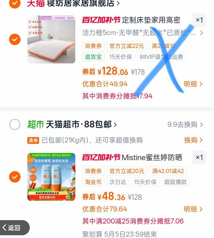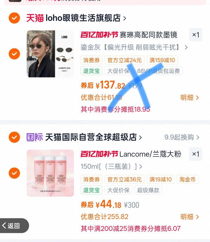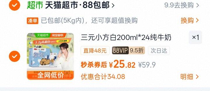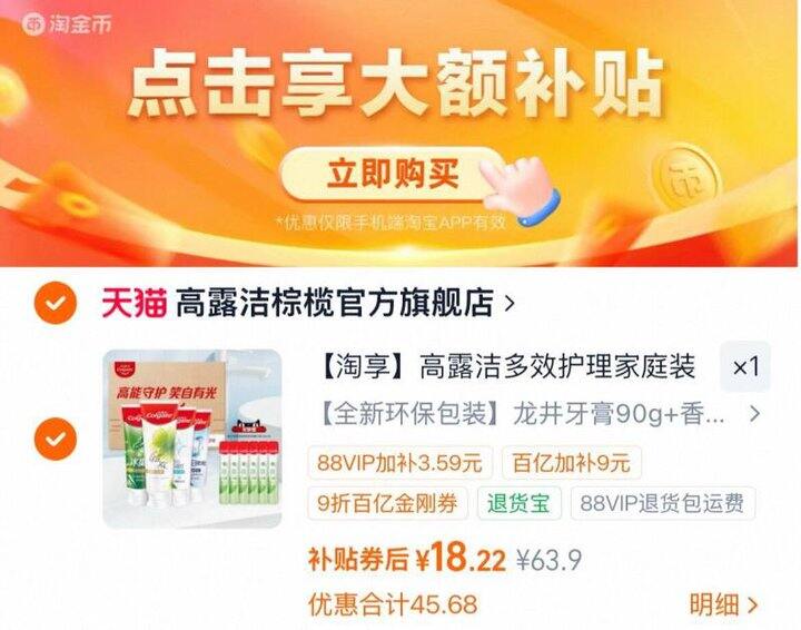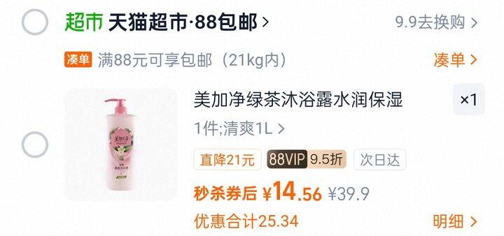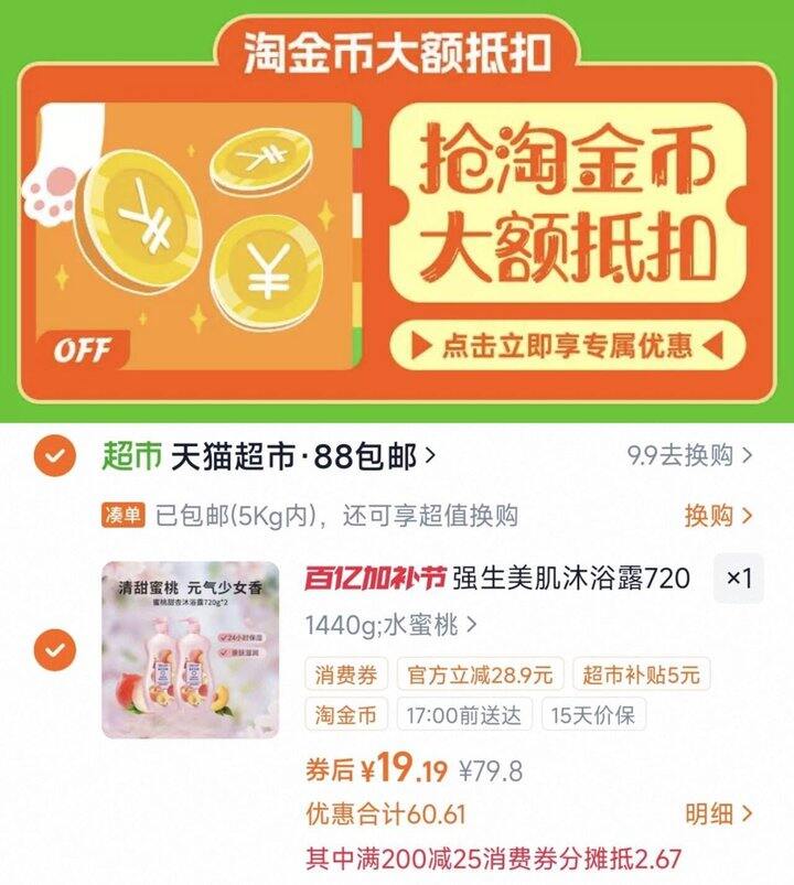 淘金币抵扣+88会员95折凑消费卷200-25卷后到手24.5元单瓶!