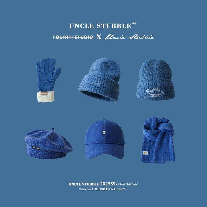 克莱因蓝显白针织帽宝蓝色毛线帽男蓝色堆堆帽女生保暖围巾手套潮