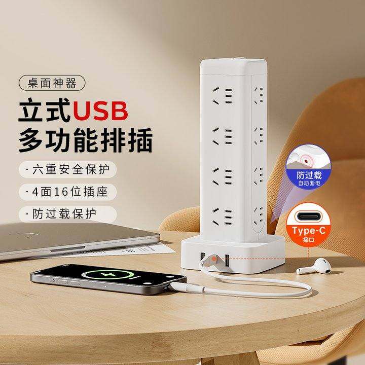 德力西立式插座塔式插座拓展插排多功能排插多孔位插位插线板USB