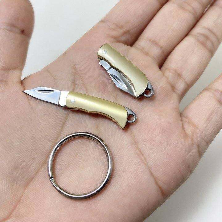 黄铜小刀迷你随身开快递折叠刀户外便携不锈钢锋利edc钥匙扣挂件