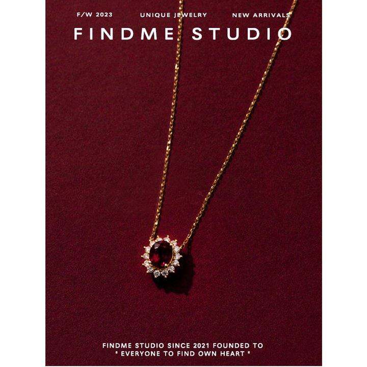 「觅己」复古戴妃款人工红宝石吊坠锆石项链女s925纯银轻奢小众