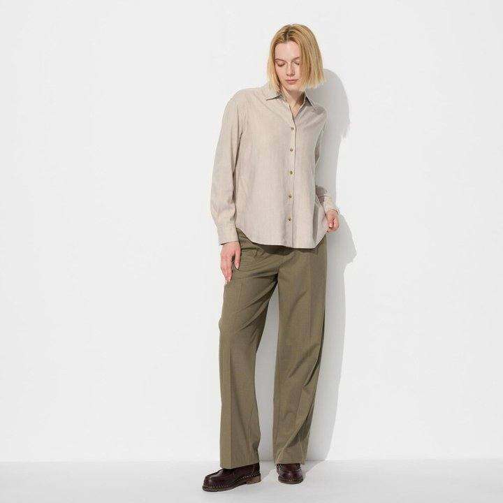 【优先顺丰】优衣库女装柔软法兰绒半开领衬衫长袖衬衣469423