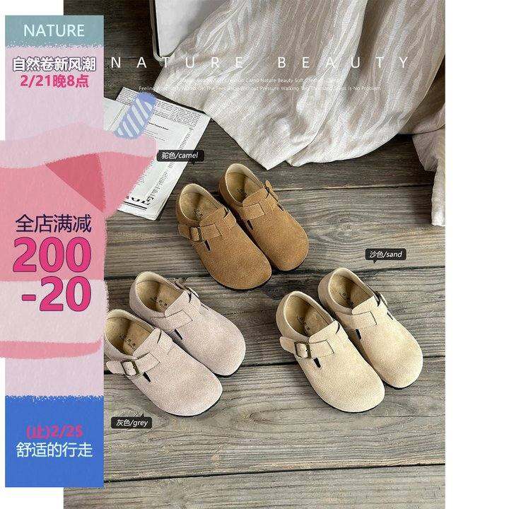 自然卷复古勃肯鞋女休闲全包牛反绒内增高新款爆款文艺一脚蹬单鞋