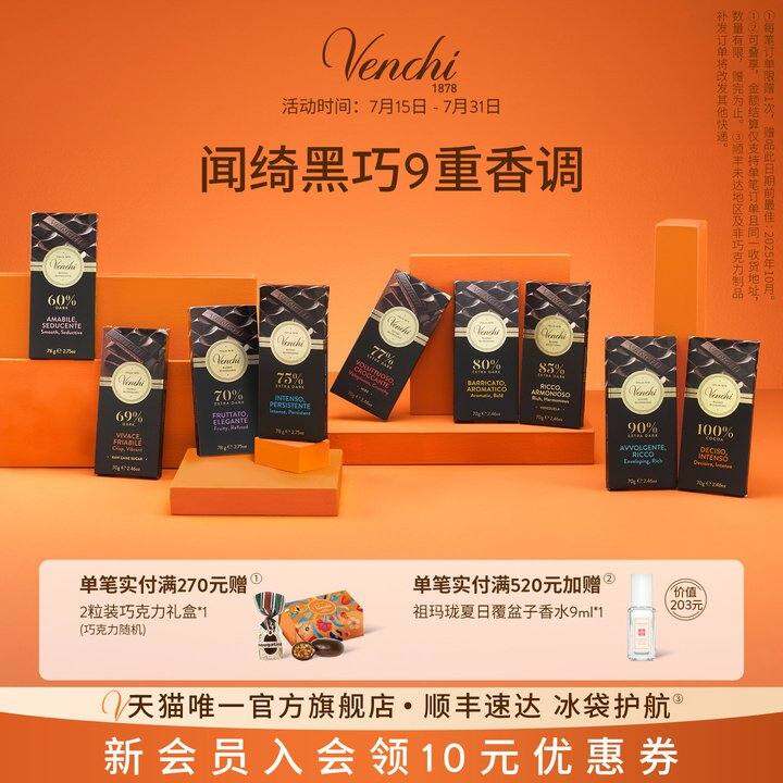 Venchi黑巧克力排块闻绮意大利进口高端零食生日礼物节日送礼