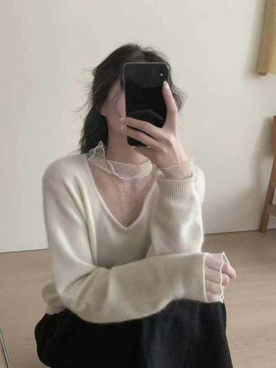 慕未家冬装新睫毛蕾丝花边一字领套头小女人全羊毛针织毛衣60692