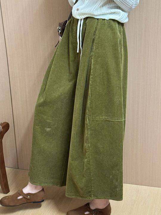 外贸原单姜黄色灯芯绒裙裤女秋冬高腰宽松设计感小个子八分阔腿裤