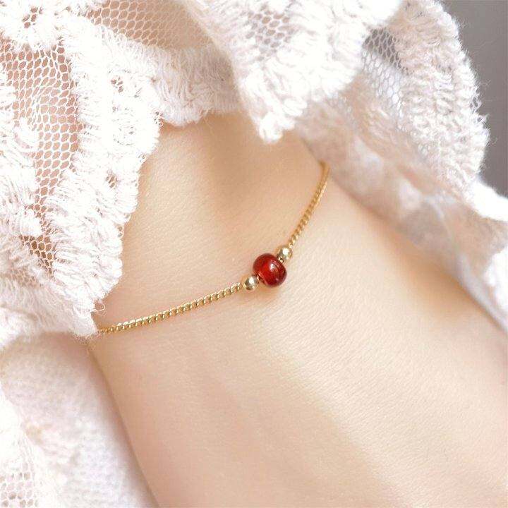 如愿 红玛瑙转运珠珍珠 美国14k包金钛钢本命年红色手錬红绳礼物